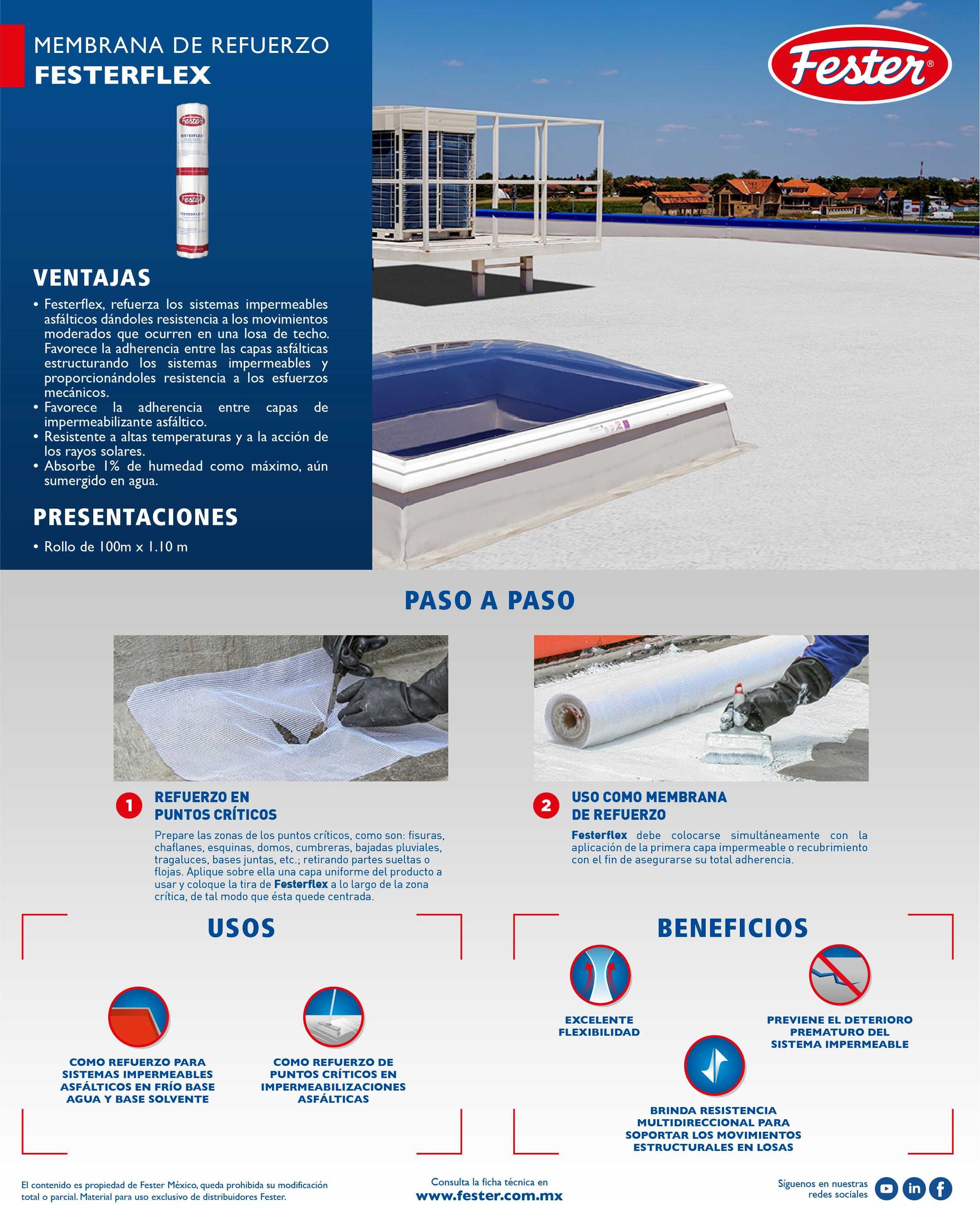 Membrana flexible elaborada a base de fibras sintéticas inorgánicas de poliéster con resistencia multidireccional para sistemas impermeables asfálticos; tanto base agua, como base solvente.
